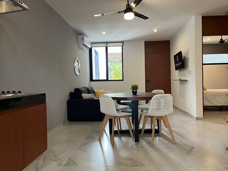 Departamento en RENTA completamente amueblado en Mérida,zona norte Dzityá, a tan solo 500m de la carretera Progreso, por lo que por su excelente ubicación tendrán todo muy cerca (escuelas, centros comerciales, hospitales, gimnasios, cines, canchas de padel)