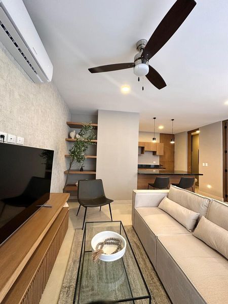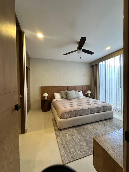 Se entrega con carpintería de madera de encino, en cocina, baños y closets, lámparas decorativas en sala y baños, espejos y cristal templado en baños.